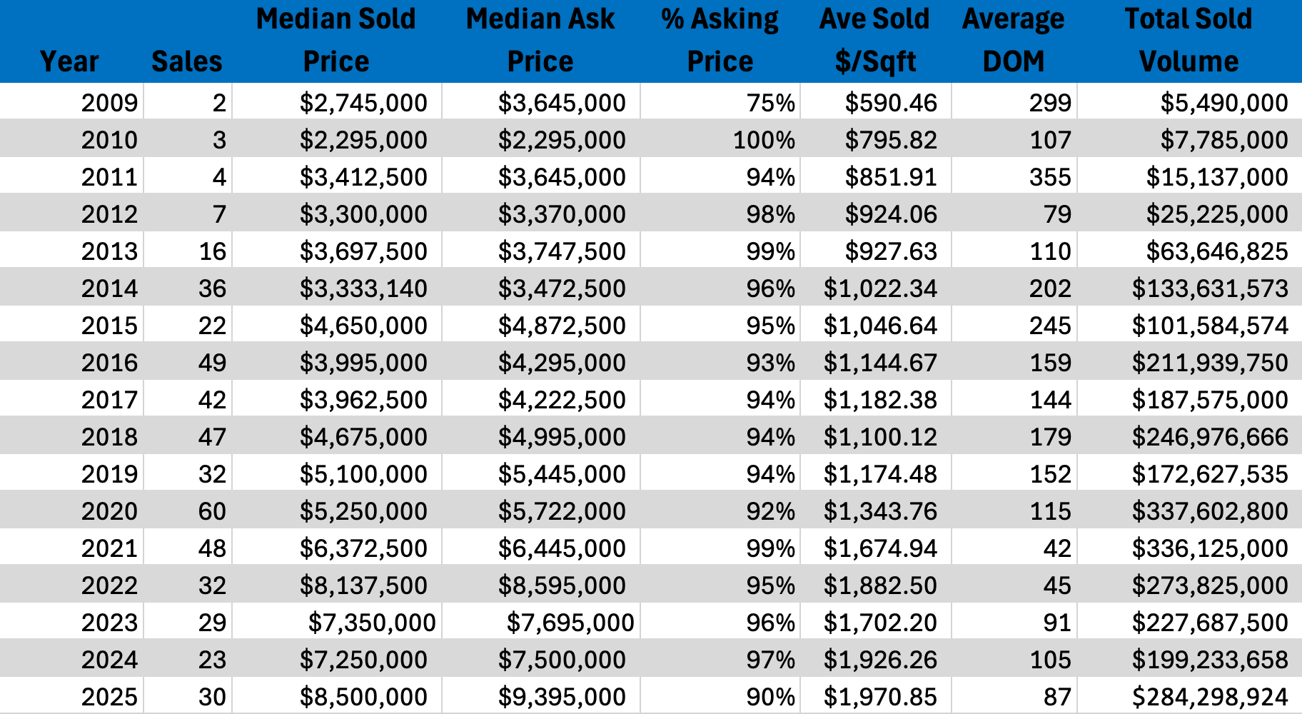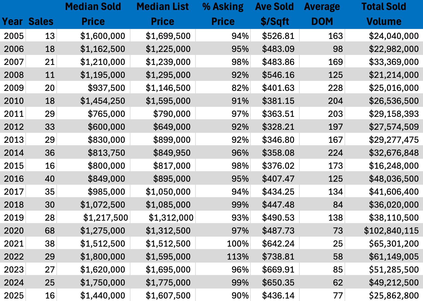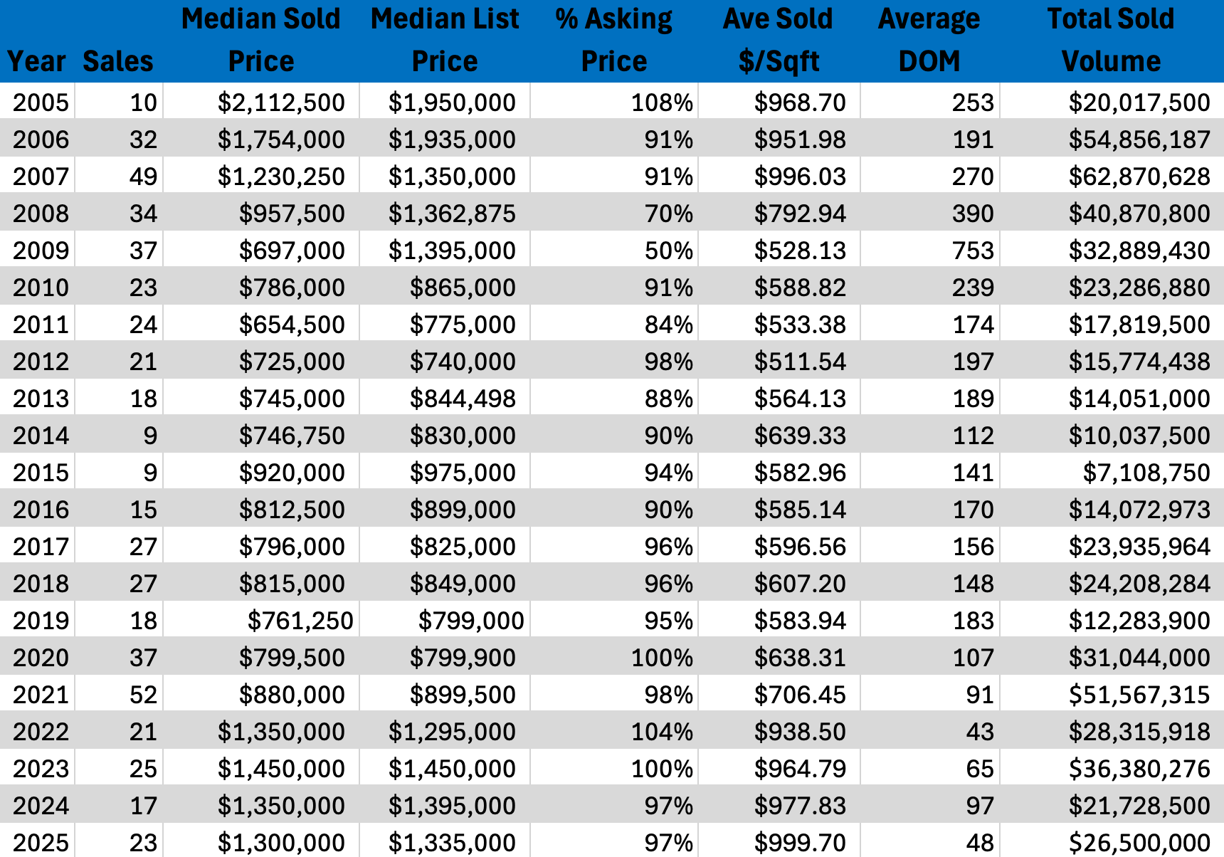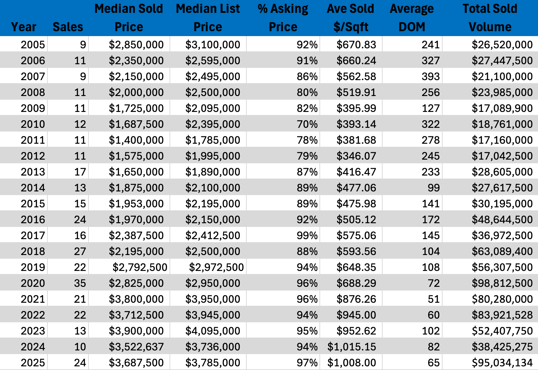 Northstar Homes experienced a more measured year in 2025, with median pricing easing slightly as fewer top-end homes traded. Importantly, buyers continued to pay strong prices per square foot, indicating that demand remained intact. Homes that were properly priced and well maintained still attracted attention, while over-ambitious listings faced longer timelines. For buyers, 2025 provided selective opportunities without signaling a broad market shift. Sellers were reminded that pricing discipline remains essential in a maturing luxury environment.
