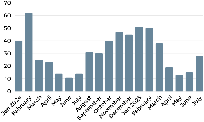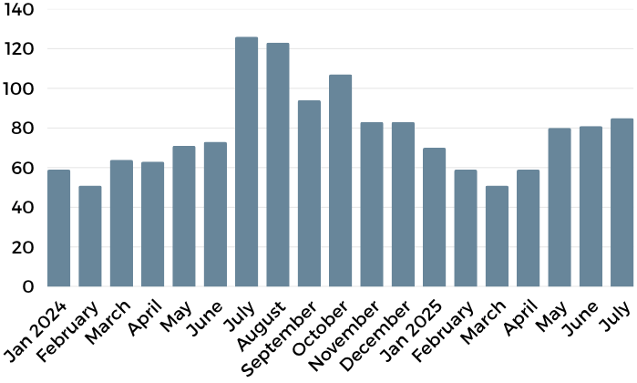 July closed out with 85 residential sales, a modest 5% bump over June, yet a notable 33% drop year-over-year from July 2024’s 126 transactions. This divergence speaks to the shift in buyer urgency and confidence, driven largely by broader economic signals and a growing awareness that patience pays.