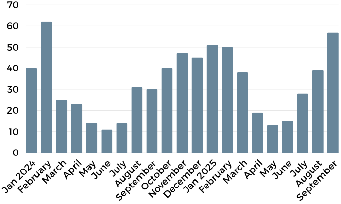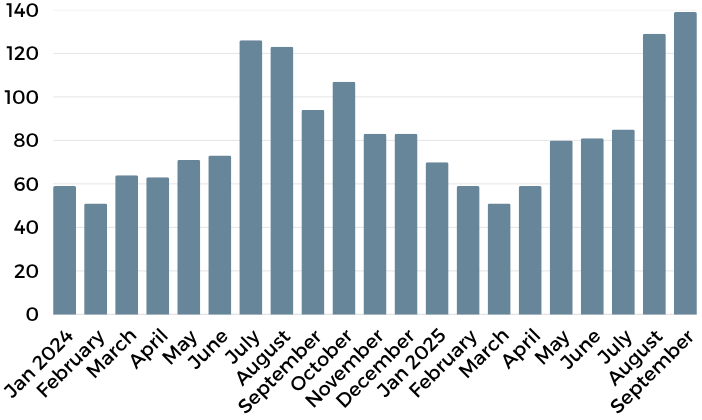 September closed with 139 completed sales, marking a 7.75% increase from August and an impressive 48% jump year-over-year. This robust activity confirms what we’ve been sensing on the ground: buyers are out there and deals are getting done; but the terms are changing.