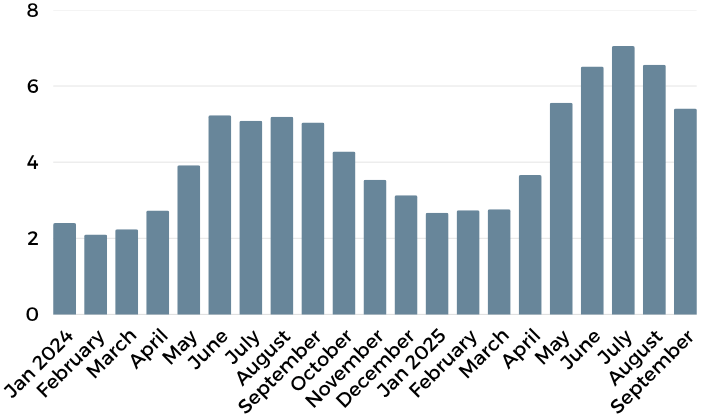 Homes traded at 4.3% below asking price on average in September, as sellers increasingly negotiated to meet market reality. Simultaneously, inventory fell 18% month-over-month, but remains 7.3% higher than this time last year. With 5.41 months of inventory currently available, the market sits squarely in buyer’s territory; offering choice, leverage, and time for calculated decisions.